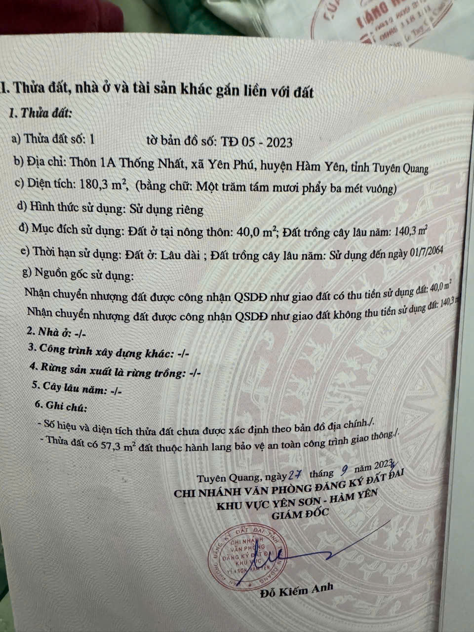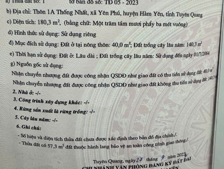 BÁN ĐẤT CHÍNH CHỦ TẠI YÊN PHÚ, HÀM YÊN, TUYÊN QUANG — GẦN THỦY ĐIỆN SÔNG LÔ 7