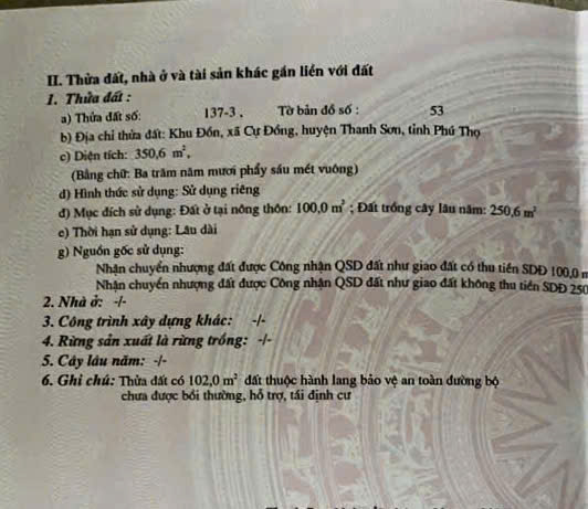 BÁN ĐẤT MẶT QUỐC LỘ 70B – XÃ CỰ ĐỒNG, HUYỆN THANH SƠN, PHÚ THỌ