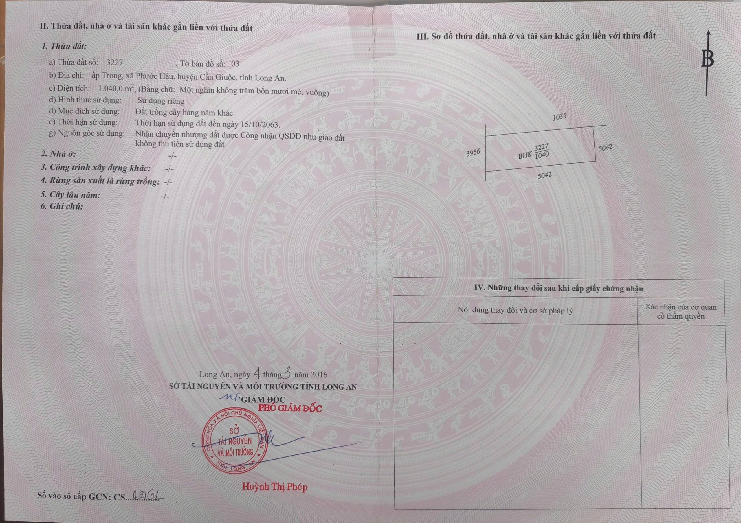 – Diện tích 1.040m2