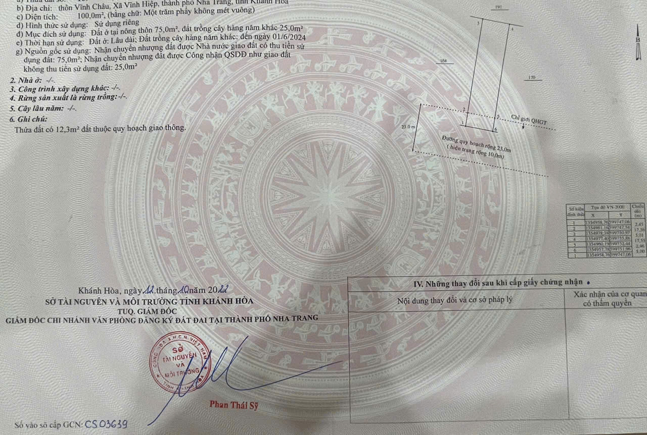 BÁN ĐẤT TRỤC CHÍNH KDC VĨNH CHÂU , VĨNH HIỆP, NHA TRANG , KHÁNH HÒA