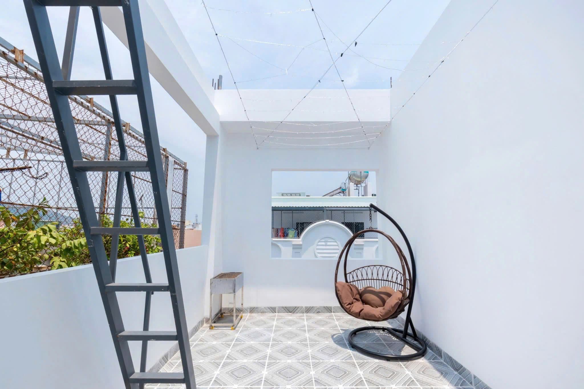 Sân thượng thoáng mát, có khu vực nướng BBQ