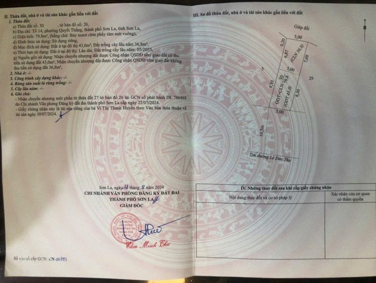 CHÍNH CHỦ BÁN ĐẤT – PHƯỜNG QUYẾT THẮNG, TP. SƠN LA