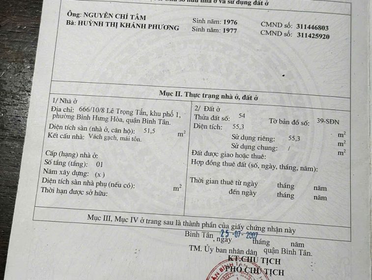 * Vị trí: 666/10 Đường Lê Trọng Tấn, Phường Bình Hưng Hòa, Quận Bình Tân, TP.HCM