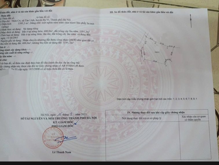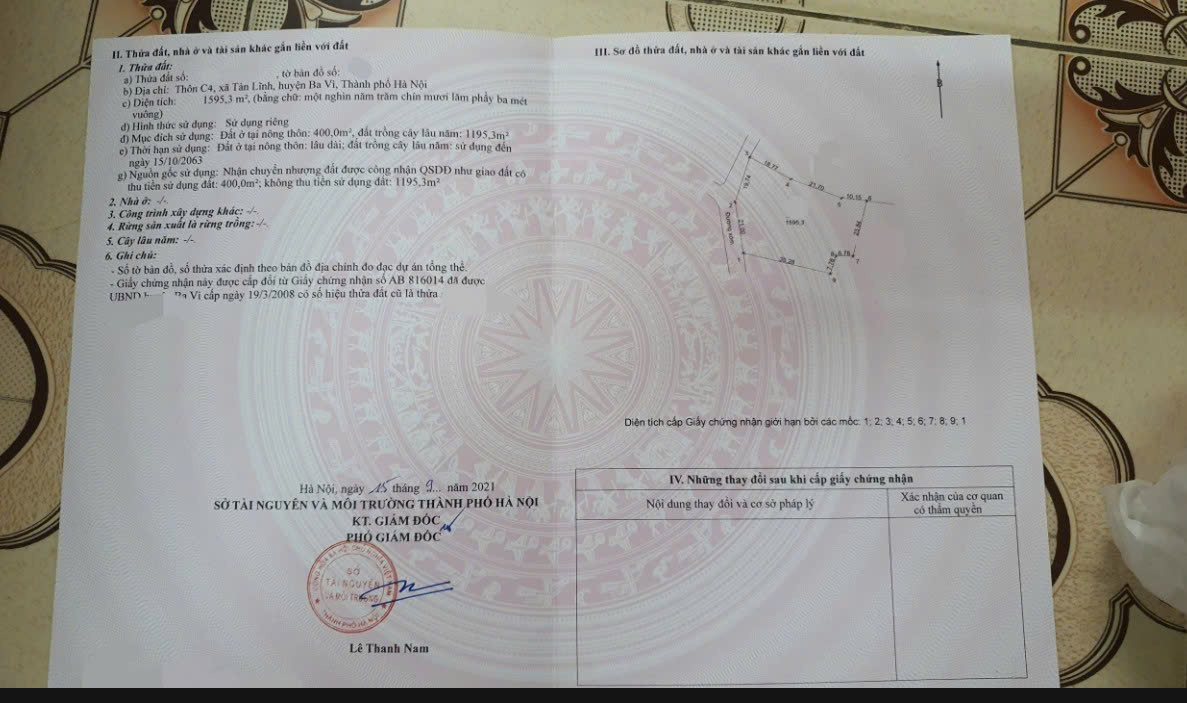 CHÍNH CHỦ BÁN NHANH LÔ ĐẤT TẢN LĨNH – BA VÌ