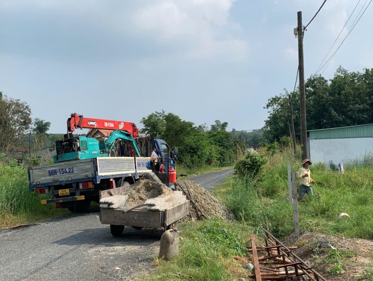 – Đã làm hàng rào trụ – kẽm gai, có đặt ống cống trước đất