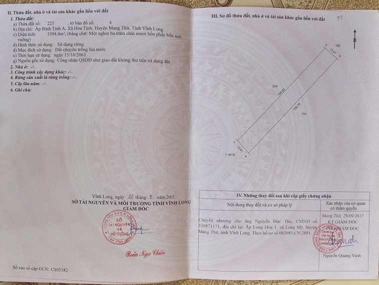 CHÍNH CHỦ CẦN BÁN ĐẤT VƯỜN TẠI XÃ HÒA TỊNH – H.MANG THÍT – VĨNH LONG.