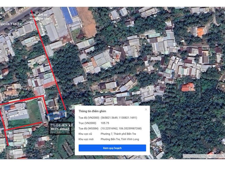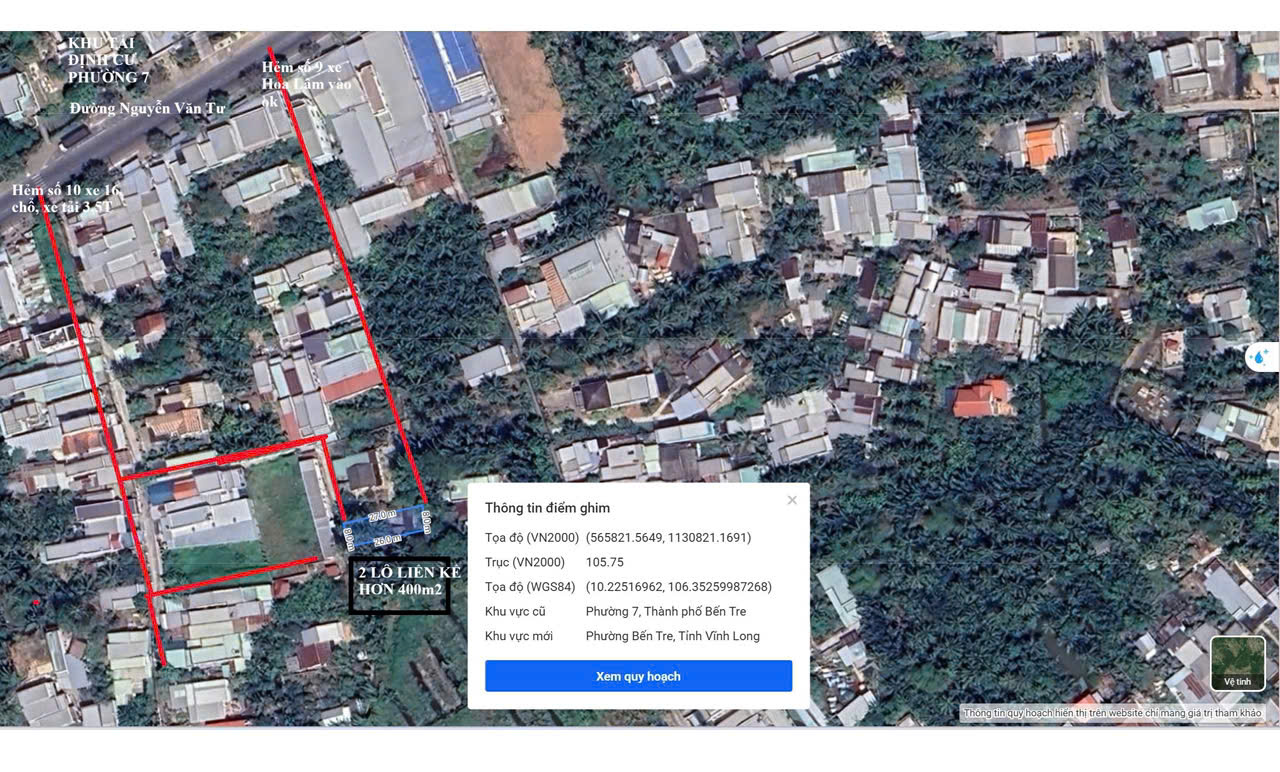 ❌ CHÍNH CHỦ CẦN BÁN LÔ ĐẤT CÓ VỊ TRÍ ĐẸP TẠI ĐÔ THỊ PHƯỜNG BẾN TRE TỈNH VĨNH LONG (Phường 7 TP Bến Tre cũ)❌