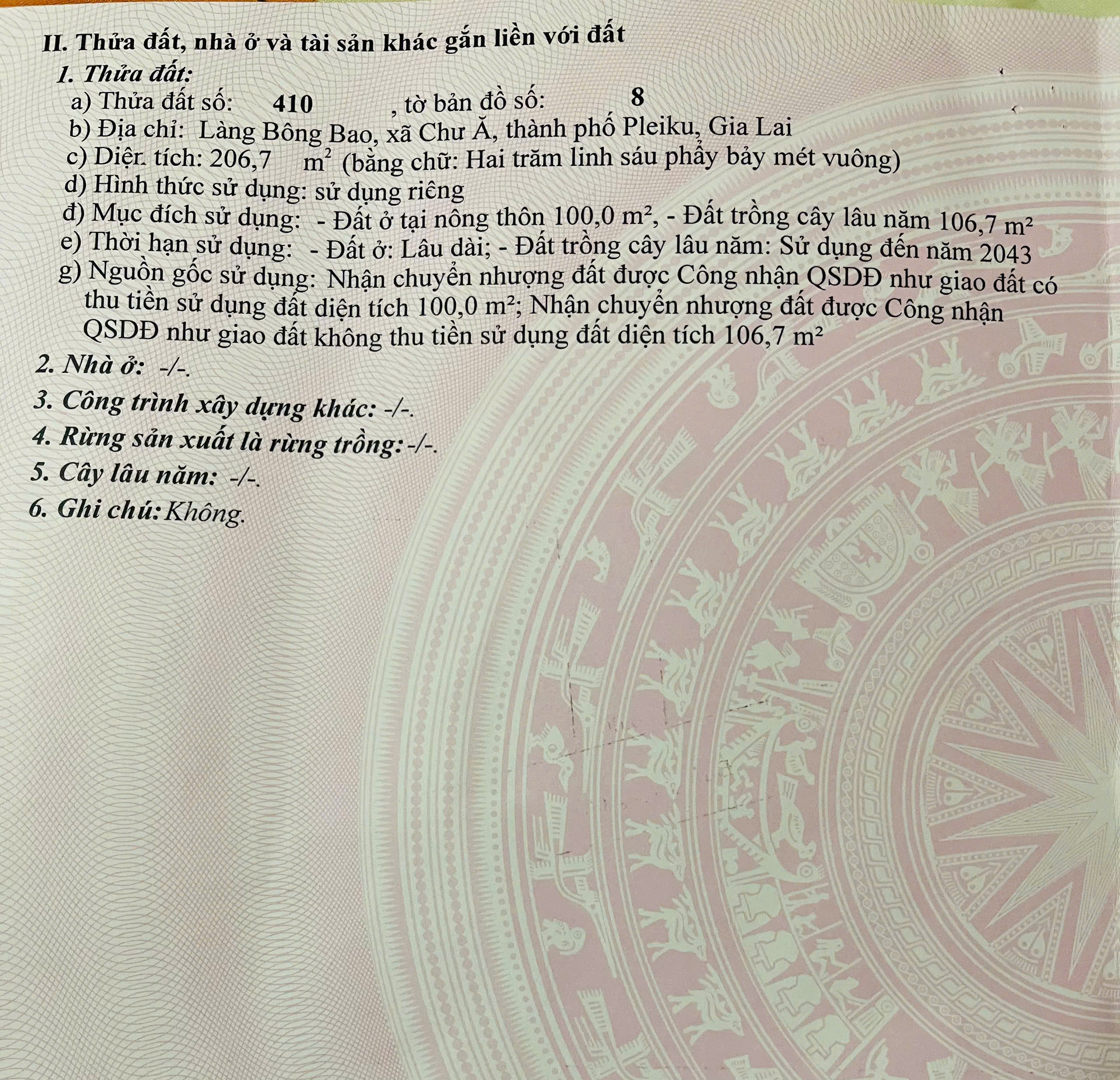 * Diên tích: 210m2.Ngang 6m, dài 35m. Thổ Cư 100m2.