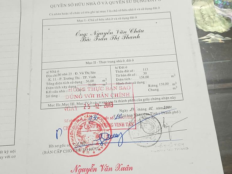 - Tên chủ nhà chính chủ