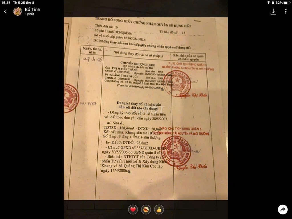CHÍNH CHỦ CẦN BÁN  NHÀ PHƯỜNG 15 ,QUẬN 5 ,TPHCM