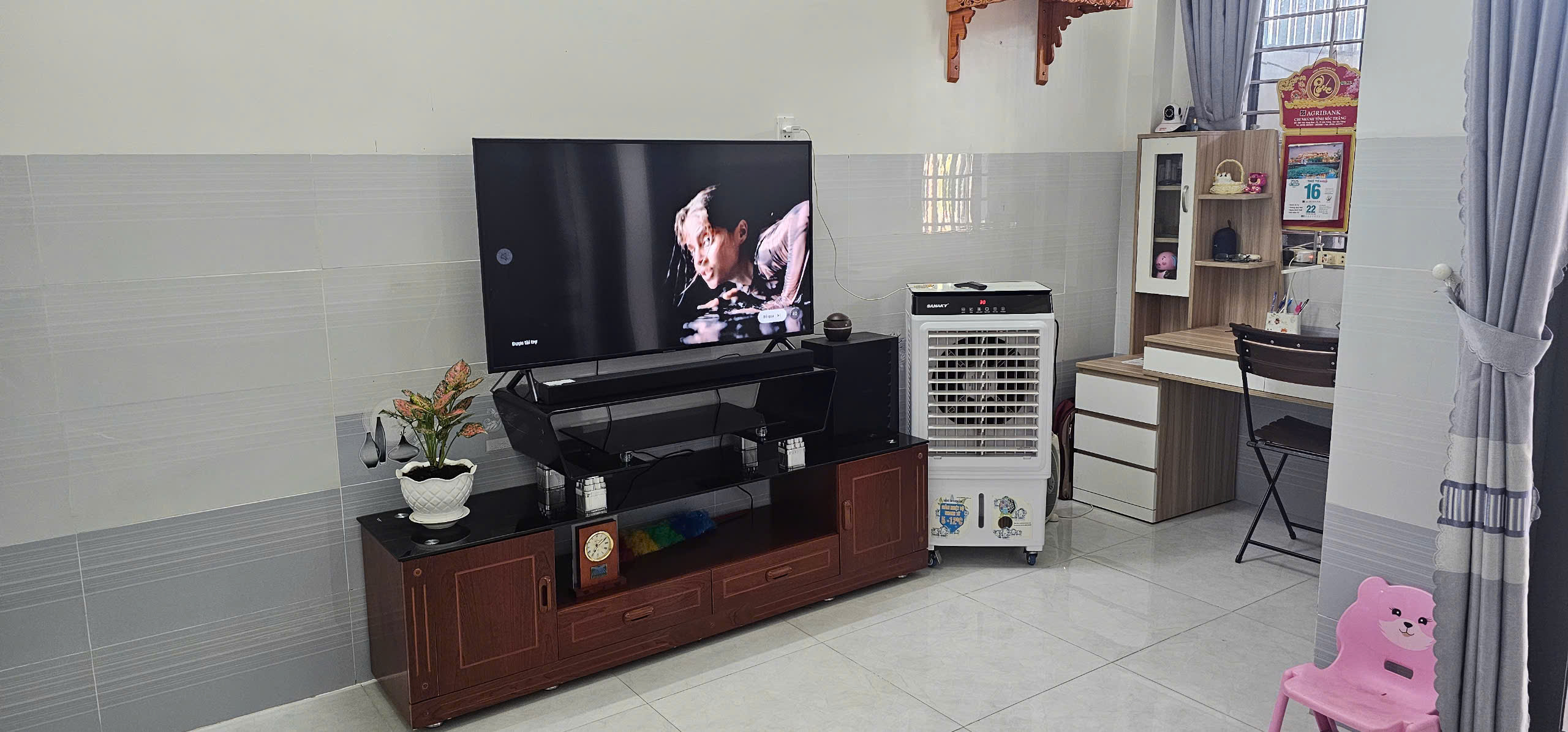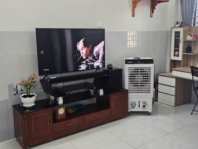 – Tivi 50 inch, Kệ tivi, Bàn làm việc, Quạt nước, Tủ lạnh, Máy giặt, Giường sắt, tủ đồ, Hai máy lạnh (gắn tại hai phòng ngủ).