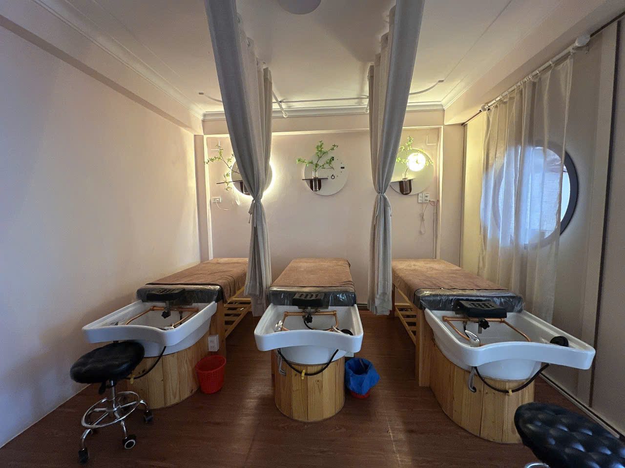 – 3 giường gội, 4 giường massage & làm da.