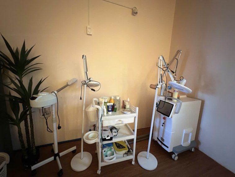 – Đèn làm da, bàn ghế tiếp khách, quầy thu ngân, và nhiều vật dụng khác.