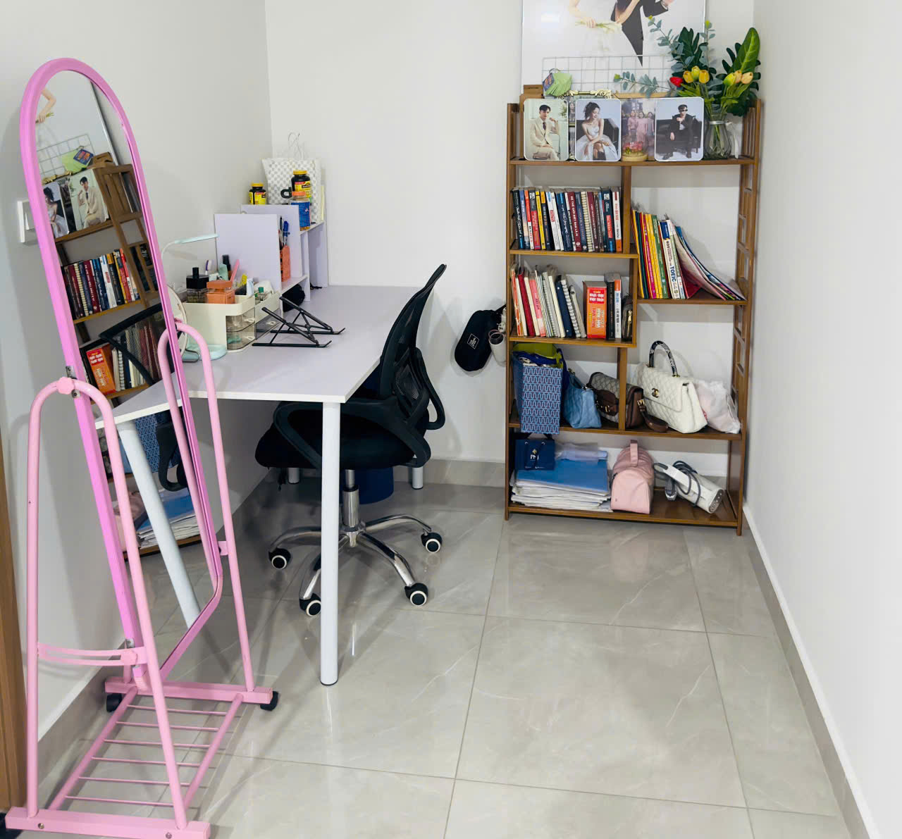 + Giường, nệm, rèm cửa 2 lớp, kệ sách, tủ đồ