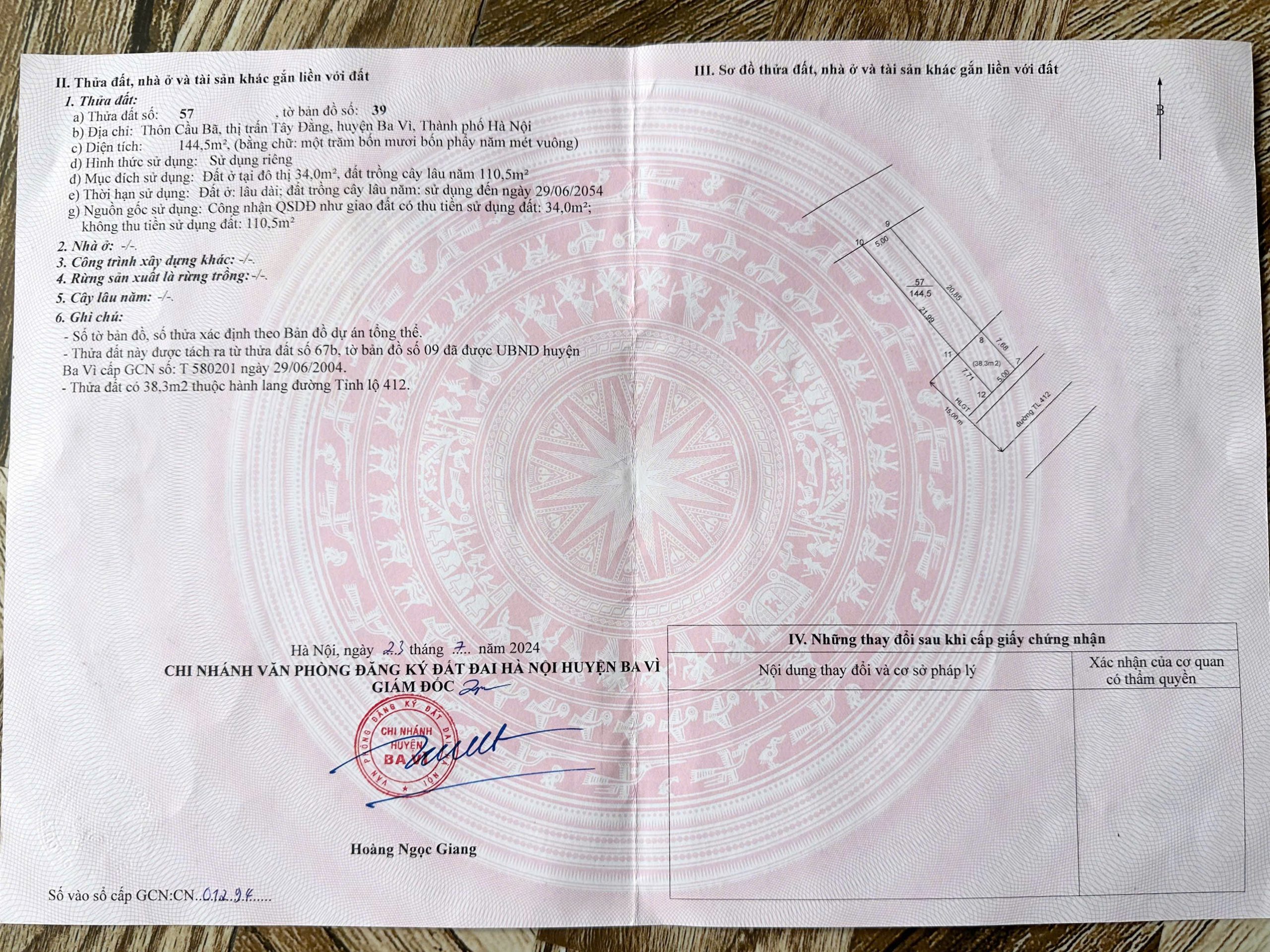 Chính chủ gửi tin bán đất Tây Bằng -Ba Vì -Hà Nội