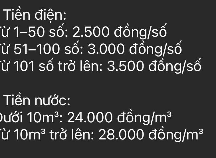 + Điện: 2.500–3.500 đ/số tùy mức tiêu thụ