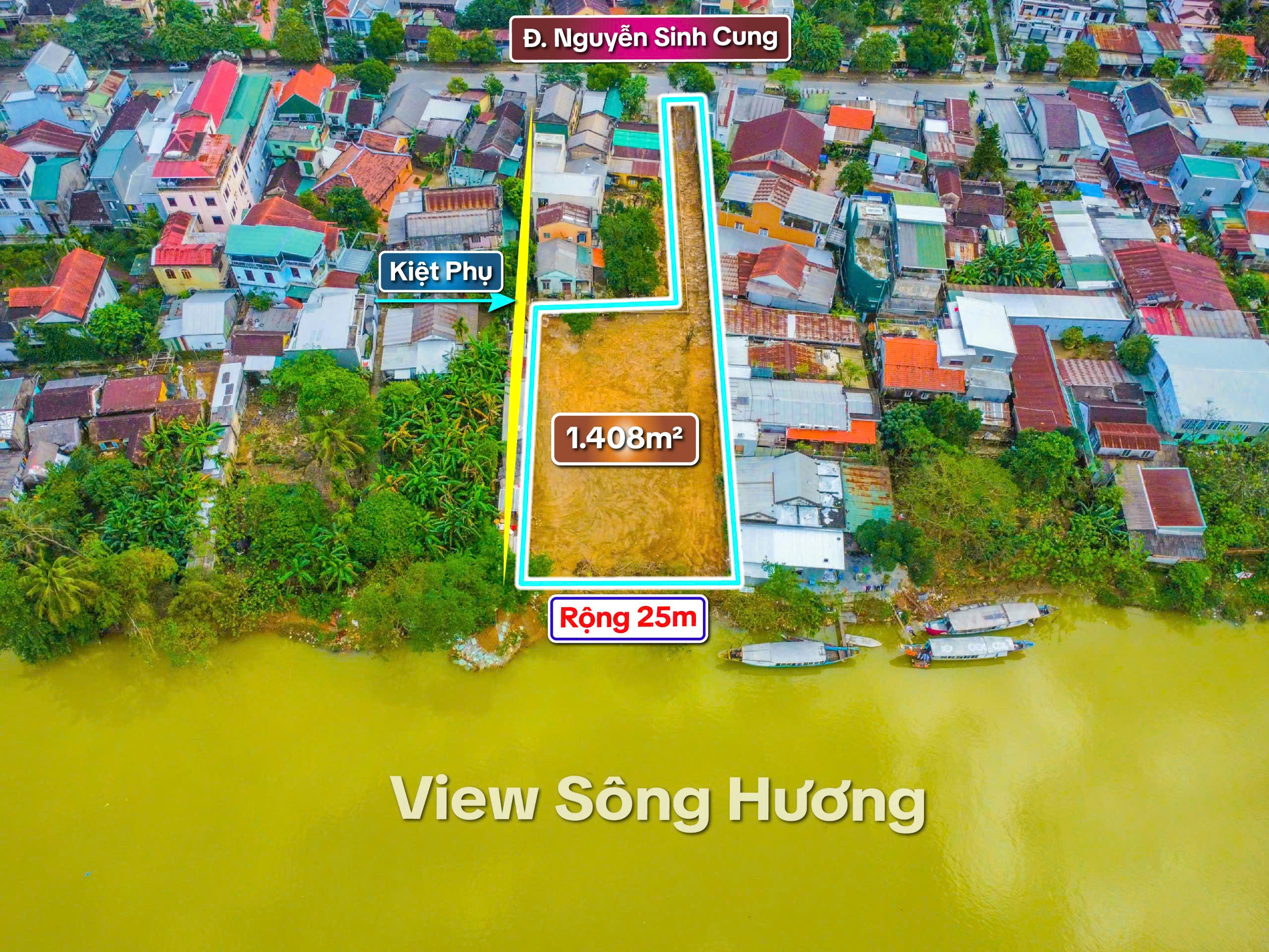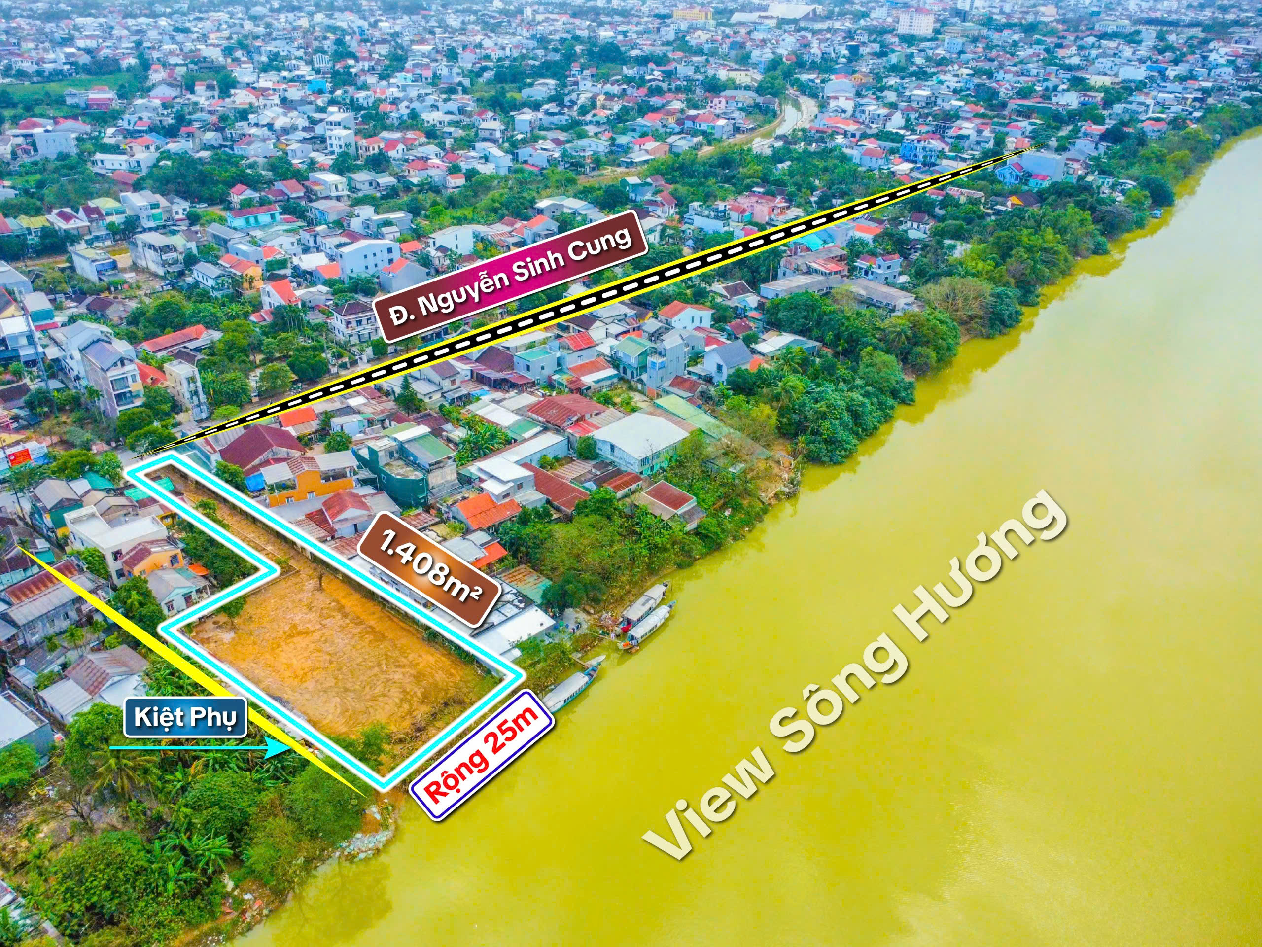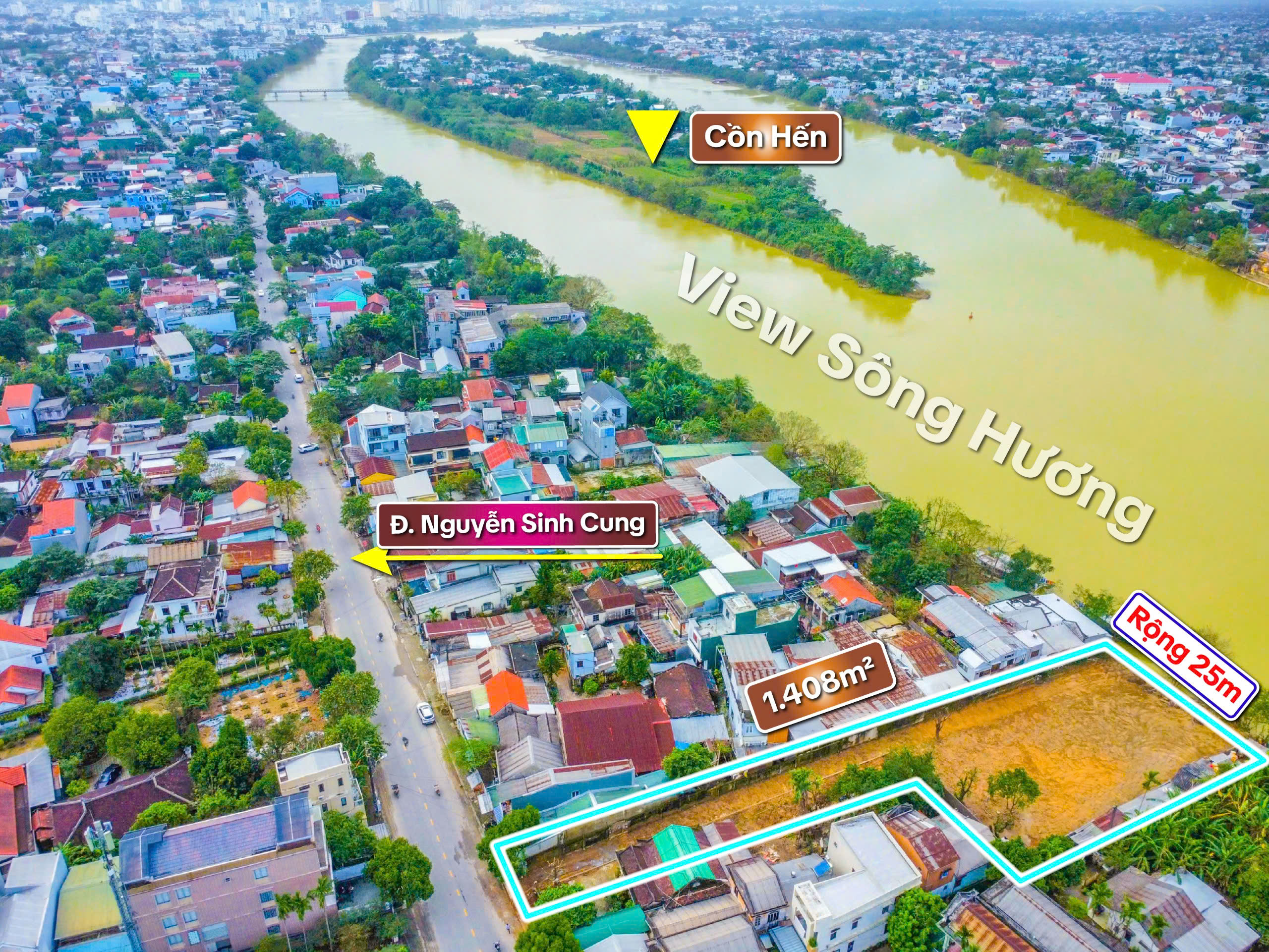 ——————-VIEW SÔNG HƯƠNG NGUYỄN SINH CUNG—————- MẶT TIỀN 1,408.M2! ::::: Chỉ 35tr /1m2