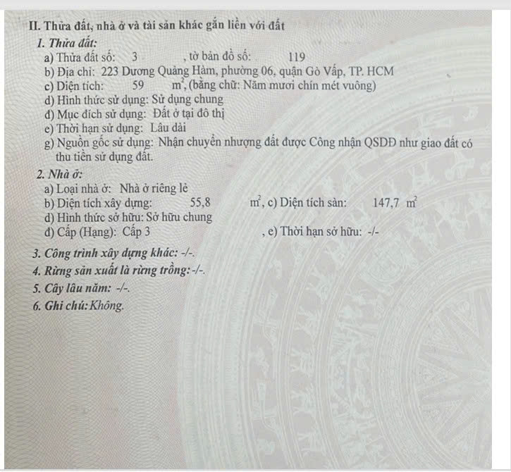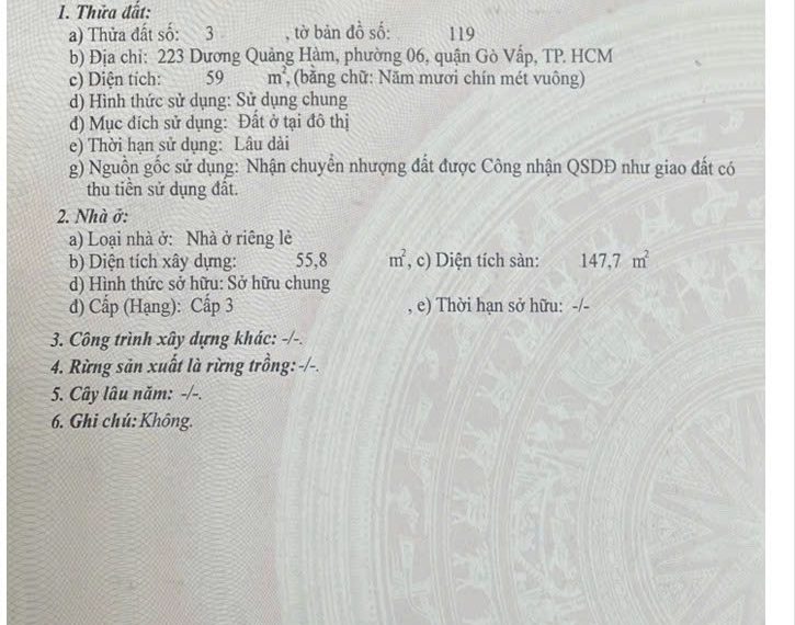 6 Diện tích công nhận: 59 m2